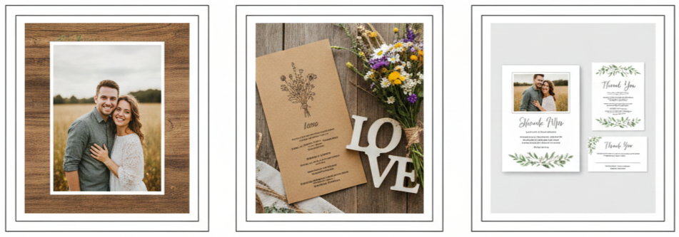 - Wedding Stationery Retailers: Some wedding-focused sites carry rustic photo kits and may offer printing services too.