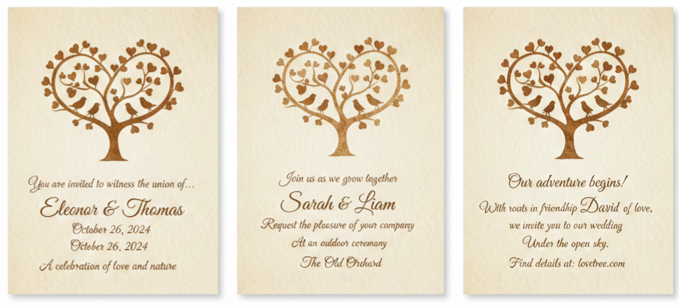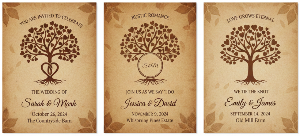 Many couples want their wedding to reflect values that matter to them, and sustainability is a big part of that for a lot of people. The vintage brown love tree invitation naturally fits into eco-conscious planning because it often uses paper options that feel organic and natural. Even the look of the invitation suggests an earth-friendly style.