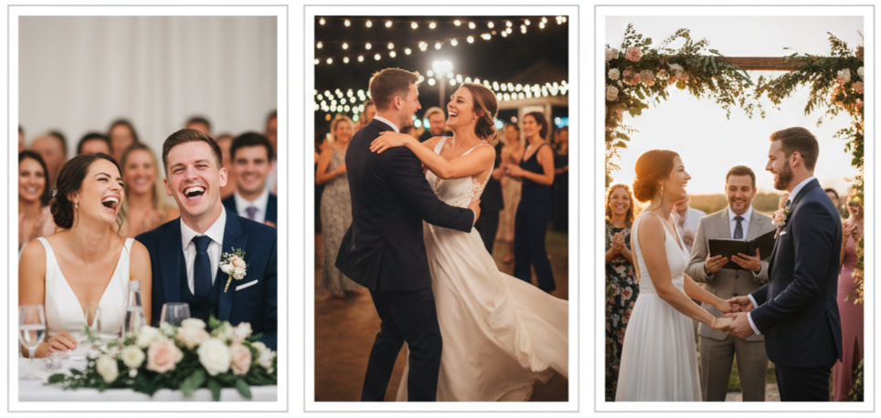 Key Takeaway: Fun wedding photos are the ones that capture real energy, genuine connection, and the little moments that make your wedding day feel unforgettable.