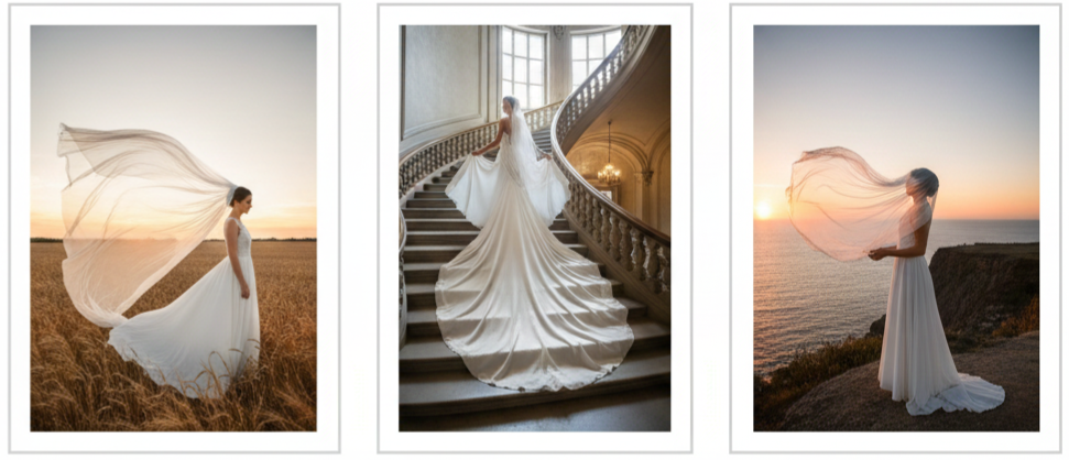 - How It Happens: We can toss the veil slightly, capture it in the wind, or have someone gently fan it out behind you.