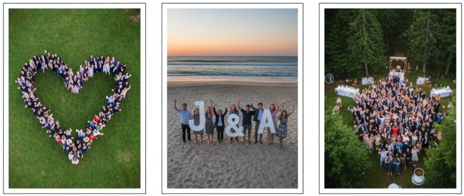 - What We Can Do: Guests forming a heart, waving, holding signs, or even creating initials.
