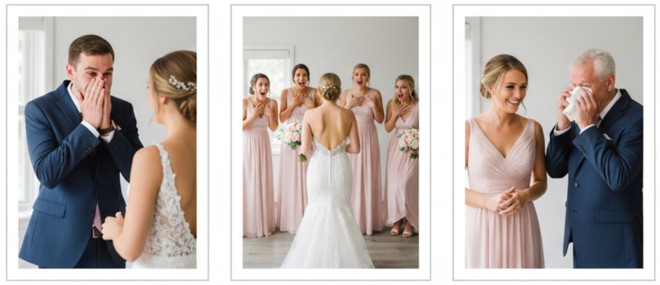 - Why It’s A Must: The first look is one of the most emotion-packed moments of the day, and it usually happens in a quiet space where you can truly react without distractions. We get real expressions here, not the “camera-ready” ones.