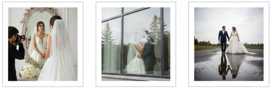 - How To Make It Natural: We can use reflection shots during calm moments like getting ready or during couple portraits.