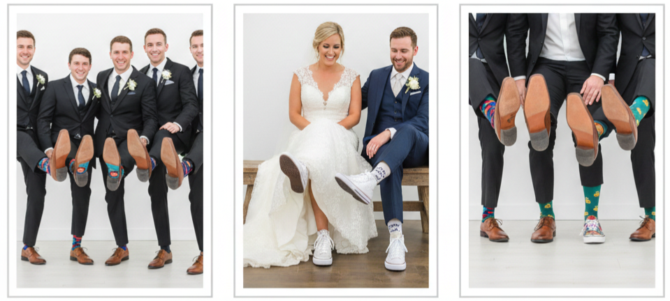 - What Works Best: Matching socks, themed socks, sneakers under the dress, custom shoes, or playful wedding party footwear.