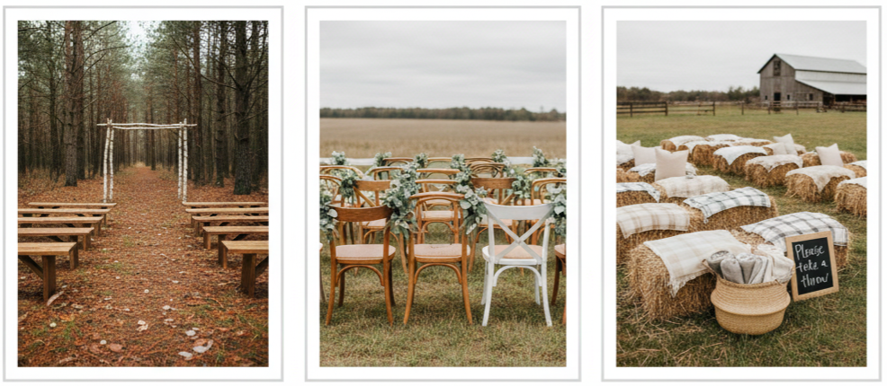 | Hay Bale Seating | Outdoor ceremonies, casual vibe |
