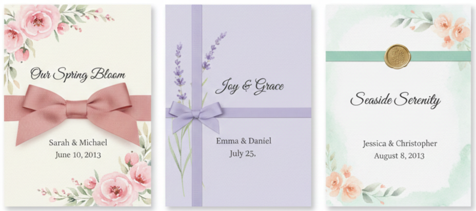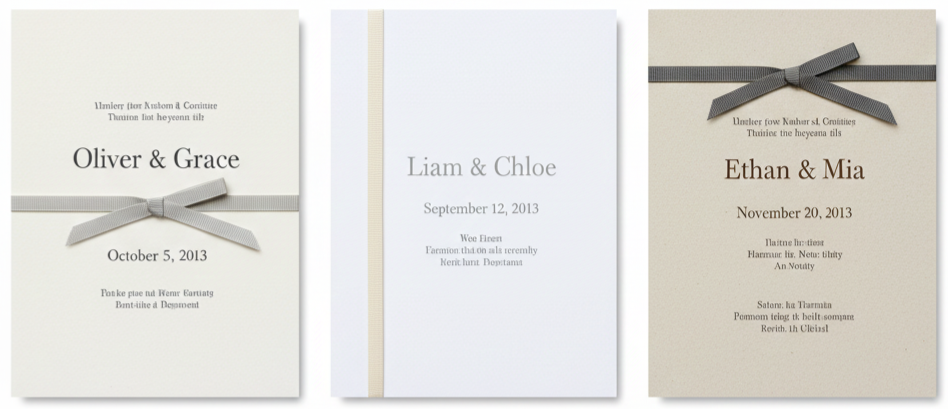 In 2013, DIY weddings were incredibly popular, and ribbon invitations were one of the most common projects couples tackled. Ribbon made it easy to create something unique without needing a professional printer for everything. Couples could order simple printed invitations and then personalize them with ribbon wraps, bows, or tied bundles at home.