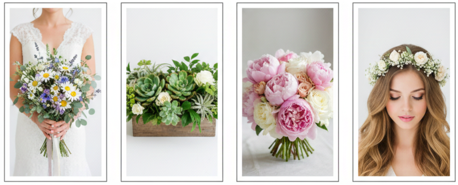 | Florals | Wild Bouquets, Succulents | Loose, organic arrangements |