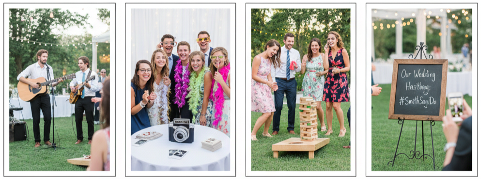 - Lawn Games: Cornhole, oversized Jenga, and ring toss gave guests something to enjoy during cocktail hour or downtime.