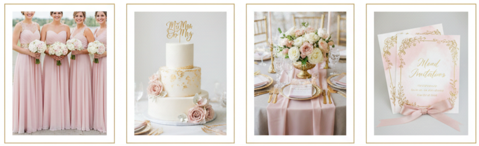 In 2014, weddings embraced soft, romantic tones—blush pinks paired with gold accents created an elegant, dreamy atmosphere. These tones were used in everything from bridesmaid dresses to cakes and table décor.