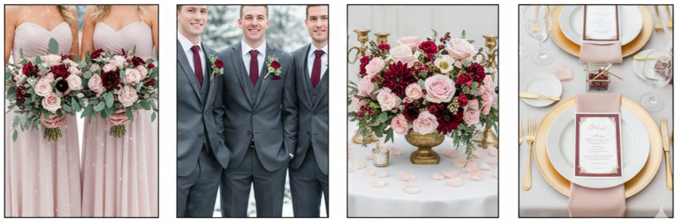 - Color mood: Blush added romance and lightness, while burgundy grounded the palette with deep tones. It struck a perfect balance between soft and bold.