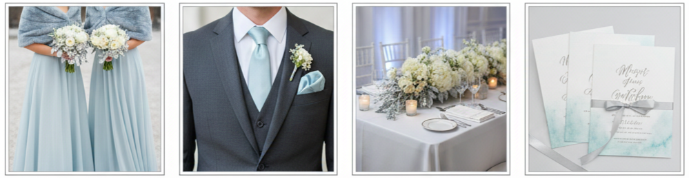 - Style details: Brides wore icy blue wraps or accessories, and bridesmaids stunned in pale blue dresses. Grooms added blue pocket squares or ties.