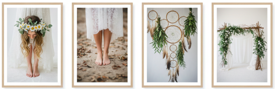 | Bohemian | Gardens, Forests | Dreamcatchers, florals, teepees | Two-piece sets, flower crowns |