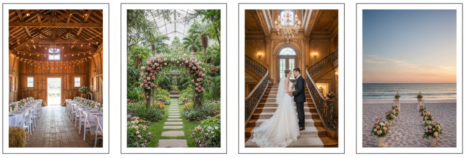 - Historic Mansions: For vintage-style weddings, old estates offered elegance and history. They featured grand staircases, formal ballrooms, and rich architecture.