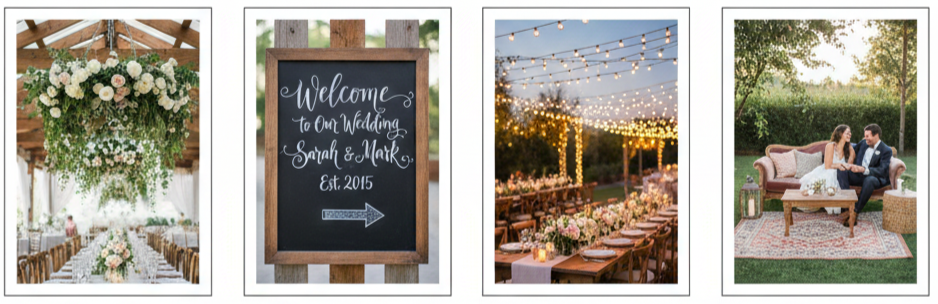 - Chalkboard Signs: Handwritten chalkboard signage was everywhere. Couples used them for welcome messages, drink menus, and schedules, adding a warm, personal touch.