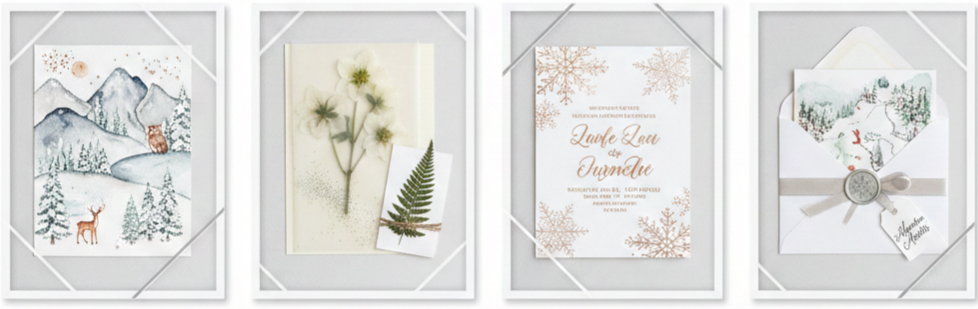 - Nature illustrations: Invitations featured snowy trees, watercolor mountains, and hand-drawn woodland animals. These small artistic touches created an inviting, wintry feel.