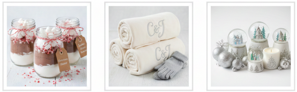 - Comfort items: Soft scarves, fleece blankets, or mittens made perfect winter favors. Couples often personalized them with monograms, tags, or embroidered wedding dates.