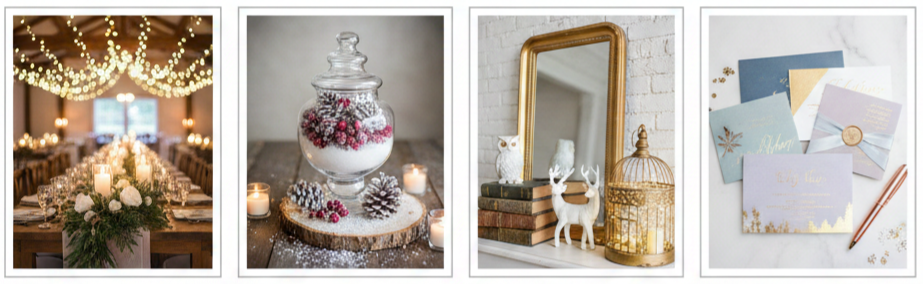 Decor set the tone for these whimsical winter weddings. From lighting to centerpieces, every detail was chosen to create a warm, magical atmosphere.
