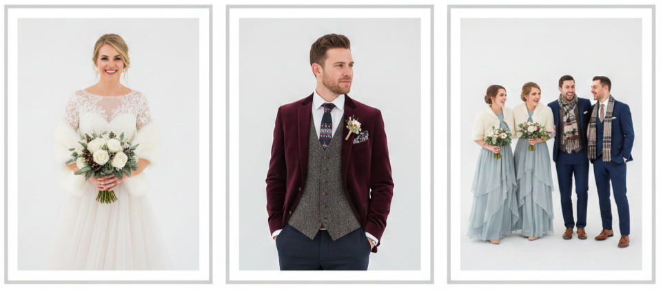 Fashion was where things really got fun. Couples embraced winter style by mixing elegance with comfort, giving everyone in the wedding party a look that was both cozy and refined.