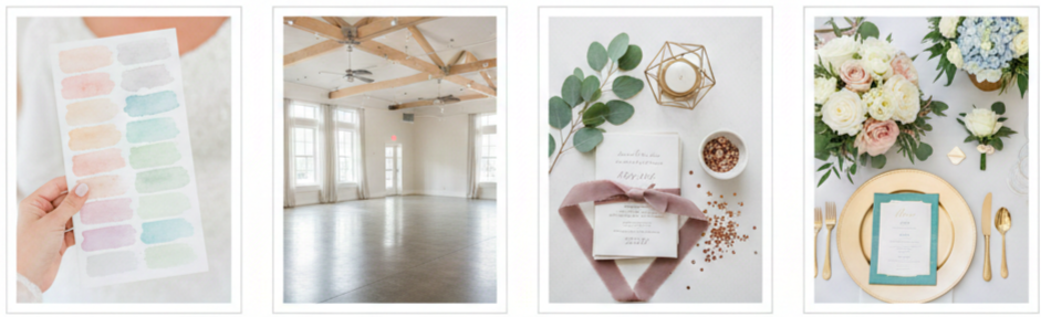 - Repeat your colors: Use your palette throughout your invitations, table settings, bridal party attire, signage, and floral designs to keep the look cohesive.