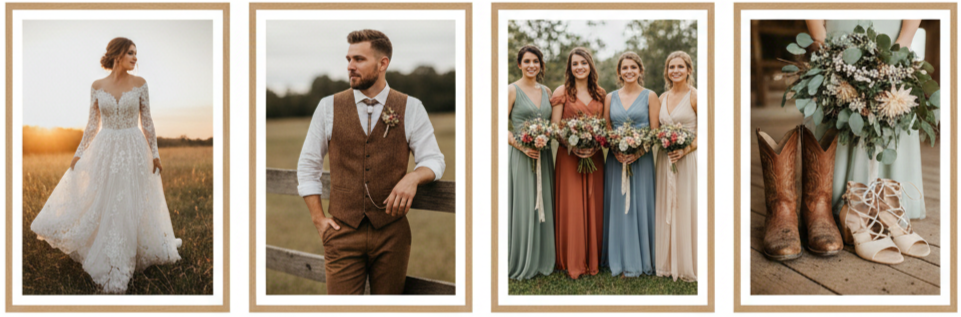 Rustic Wedding Attire: Blending Comfort and Vintage Elegance
