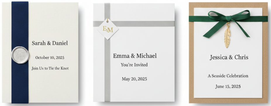 Small personalized details can add charm without increasing cost too much. A simple monogram tag tied onto the ribbon makes the invitation feel custom. A small wax seal, used sparingly, can give a more formal look. You don’t need every detail at once—choosing just one strong accent keeps the design refined instead of cluttered.