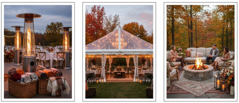 - Heaters and Blankets: These small additions make a huge difference during evening receptions.