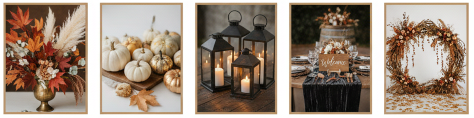 Autumn décor is one of the easiest wedding styles to build because the season already offers texture, color, and atmosphere. The goal is not to throw every seasonal item into one space. A better approach is to choose a few statement pieces and then layer smaller touches that create warmth and depth. You can keep things rustic, modern, romantic, or classy depending on the materials you choose.