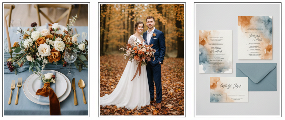 Autumn Wedding Fashion for Brides, Grooms, and Parties