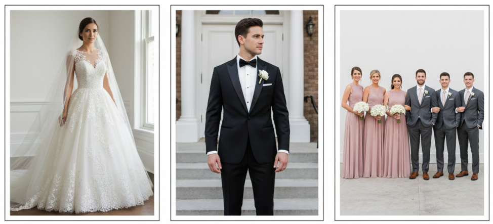 Classic wedding style focuses on structure, balance, and timeless silhouettes rather than trends. Clothing should feel polished, comfortable, and refined from the ceremony through the reception.