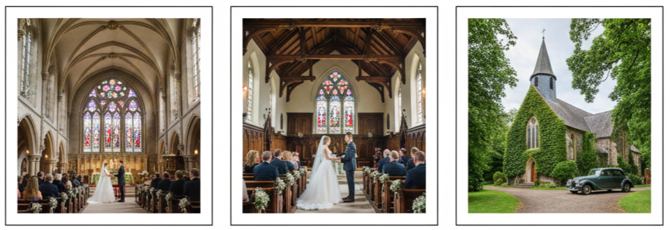 These venues offer timeless beauty through stained glass windows, vaulted ceilings, and traditional pews. They create a formal and meaningful ceremony setting.