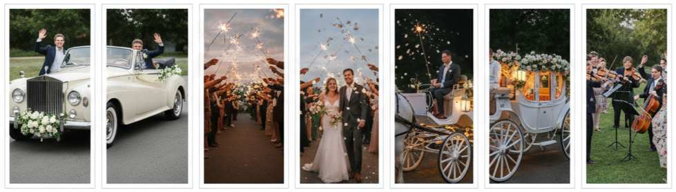 - Live Music Farewell: A band or string ensemble playing as guests wave goodbye adds charm and formality to the exit.