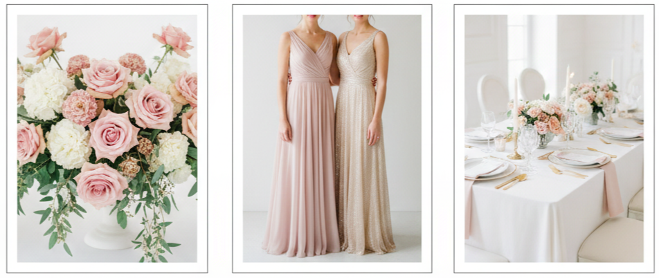 | Blush & Champagne | Soft, romantic | Spring, Summer |