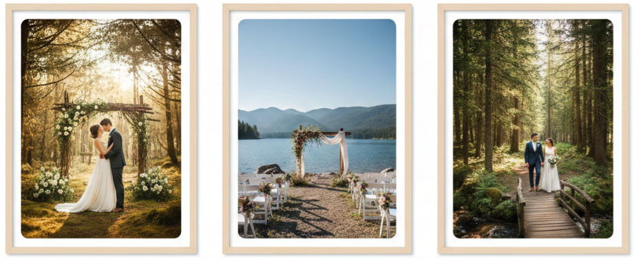 Couples who love nature often choose wooded clearings or lakeside locations. These settings provide built-in scenery, making the ceremony feel intimate and naturally beautiful.