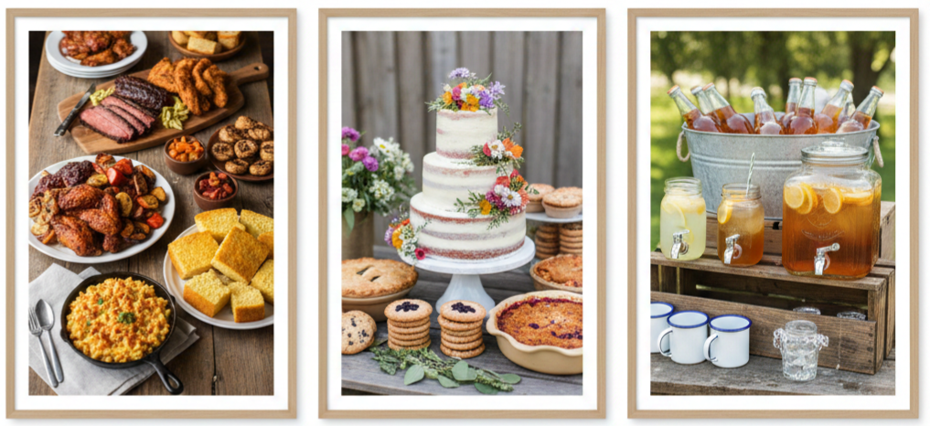 - Main Dishes: Barbecue, fried chicken, roasted vegetables, mac and cheese, and cornbread are popular choices that appeal to a wide range of guests.