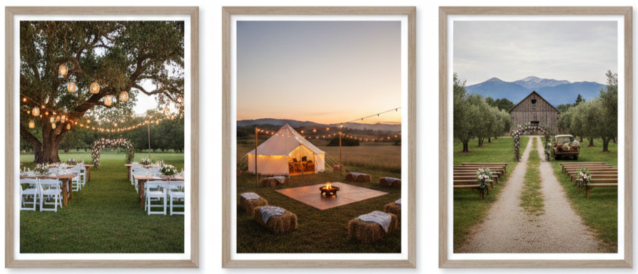 Choosing the right venue shapes the entire feel of a country rustic wedding. The goal is to find a space that already has character so you do not need to overdecorate or force the theme.