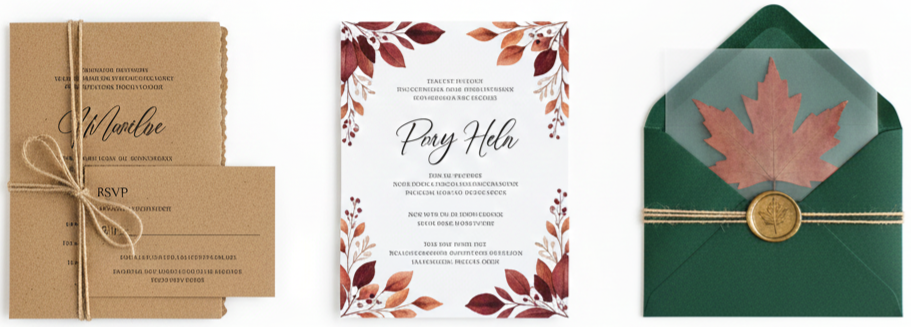 - Natural Paper Choices: Kraft paper, recycled cardstock, and textured paper give invitations a handmade feel that suits the rustic theme.