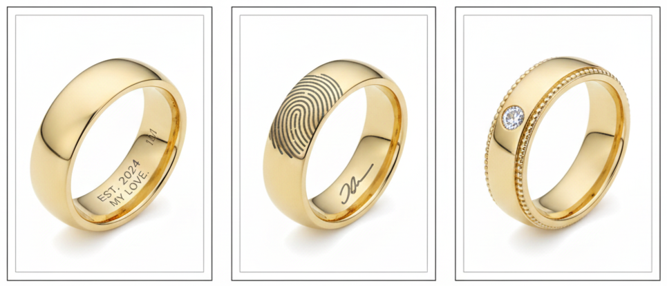 - Inside Engraving: Inside engravings add meaning without changing the ring’s exterior. Many people choose initials, dates, short phrases, or coordinates. This option keeps the ring’s style clean while making it personal.