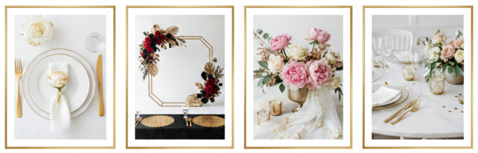 - Classic Elegant: We lean into refined gold touches, traditional florals, and formal table settings that feel timeless.