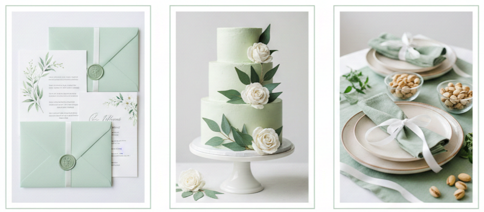 To make the palette pop, you can pair green with blush, cream, gold, copper, or ivory. These accent shades help tie everything together and keep the vibe elegant and fresh.