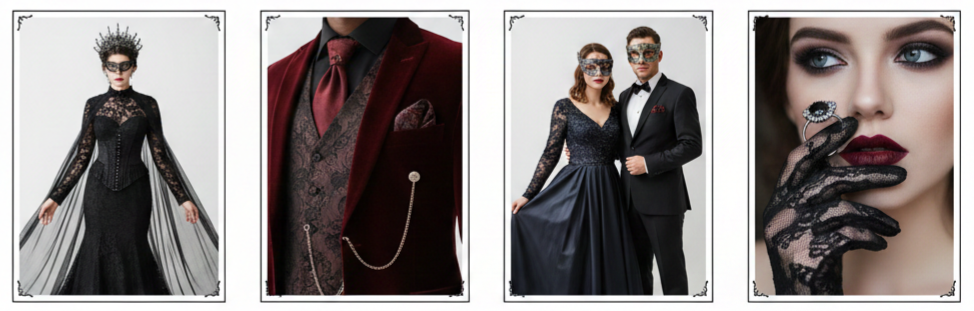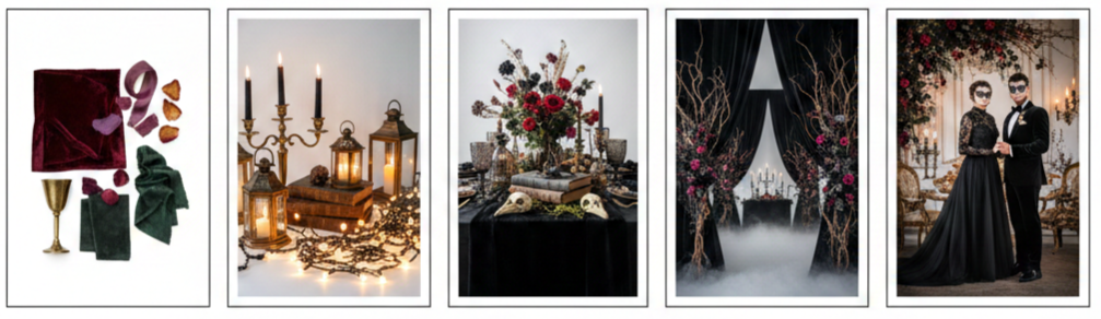 - Guest Dress Code Ideas: We can go full costume optional, dark formal, or masquerade-style. The key is clarity so guests know the vibe and feel comfortable choosing an outfit.