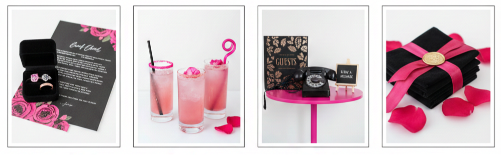- Photo Moments: Use pink and black smoke bombs for dramatic portraits, or set up a black backdrop with hot pink florals for a built-in photo wall.