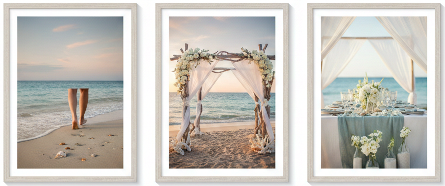 | Beach/Coastal | Ocean hues, driftwood, shells | Seaside or destination events |