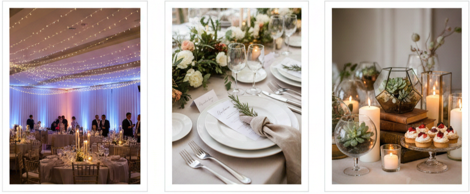 | Modern Minimalist | Clean lines, neutral tones | Urban/loft venues |
