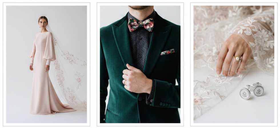 - Meaningful Accessories: Heirloom jewelry, embroidered veils, and engraved cufflinks are becoming the go-to finishing touches. These small details offer a meaningful way to tie in family traditions or personal style.