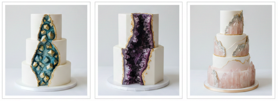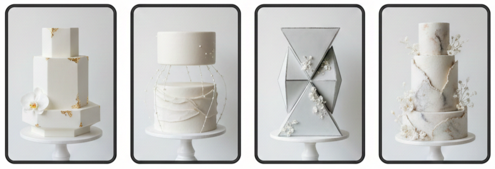 Modern cake design isn’t limited to traditional round tiers. Today’s creations experiment with shape and structure to make cakes look more like sculptures than desserts.