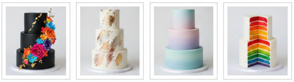 White wedding cakes will always be timeless, but more couples now want color—lots of it. Adding vibrant tones, metallic touches, or dramatic palettes helps turn the cake into a visual statement.
