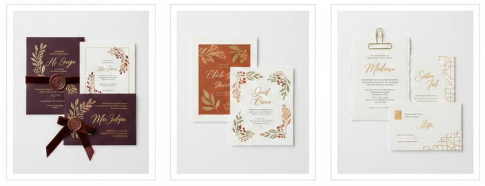 - Finishing touches: Wax seals in amber tones, twine, or deckle-edged paper can make your suite feel handcrafted but still refined.