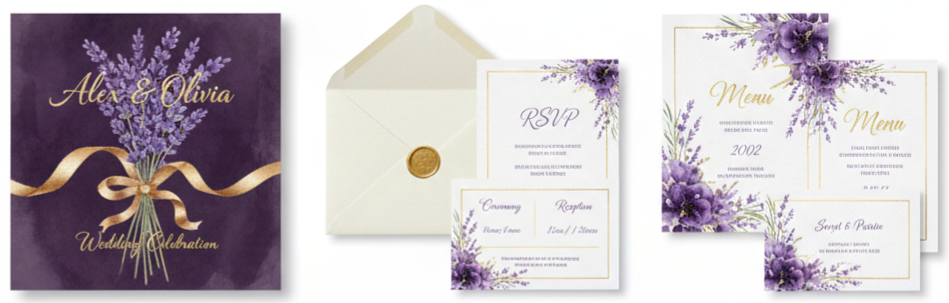 Key takeaway: Lavender invitations bring beauty and meaning together, helping you create a wedding experience that starts with love, style, and purpose from the very first envelope.