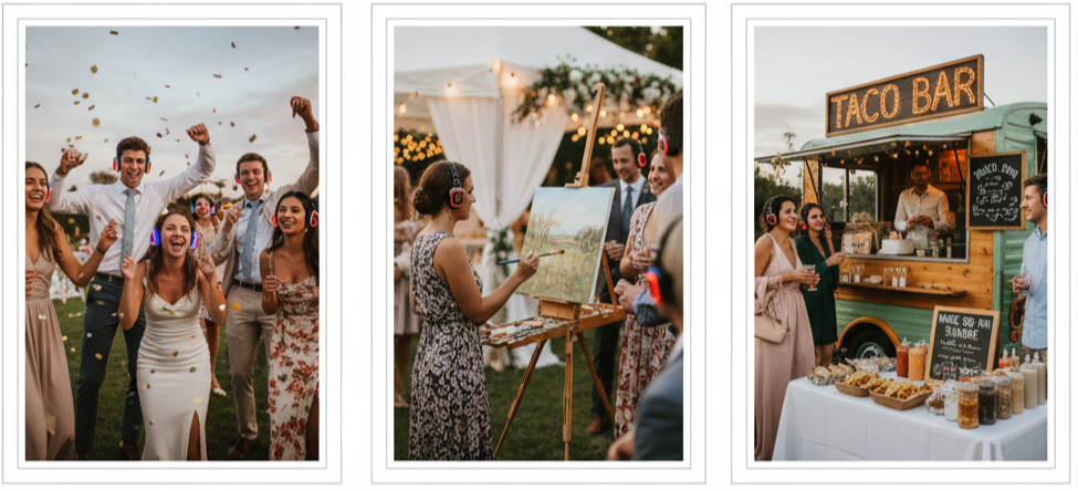 - Silent discos: These headphone parties are perfect for late-night fun or noise-restricted venues. Everyone picks their own vibe and dances to their own beat.