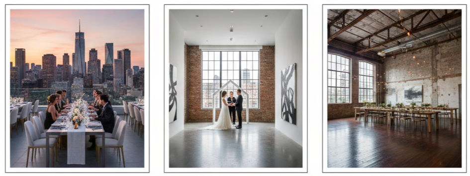 City vibes meet elegance with rooftop lounges, art galleries, or converted warehouses. These places come with exposed brick walls, sleek floors, and panoramic views—ideal for a modern, industrial-chic wedding.